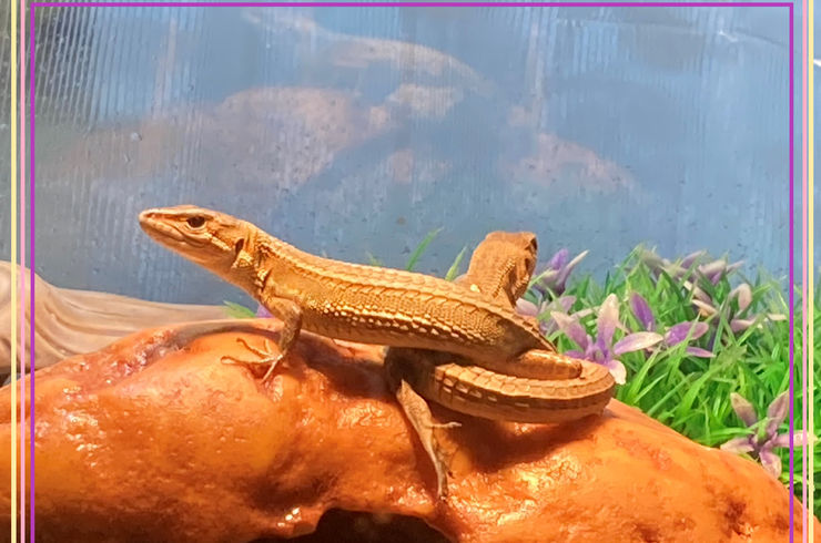 2022/02/08現在、5匹のカナヘビを飼っているヒノキ・ブルーです。 今年の夏に庭で捕まえたカナヘビ(2号)は、しっぽが付け根の方から切れていたのですが、飼育しているうちに徐々にしっぽが伸びて、一度も切れていないであろうカナヘビ(1号)と比べるとちょっと短いですが、綺麗にしっぽが復活していました。 -